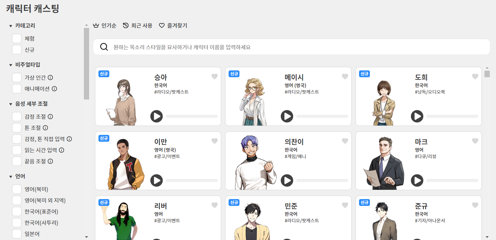 굉장히 UI가 깔끔하고 다양한 목소리의 캐릭터를 지원하고 있다.